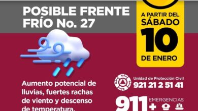El próximo sábado 10 de enero se prevé la entrada del Frente Frío 27 con lluvias fuertes a muy fuertes…