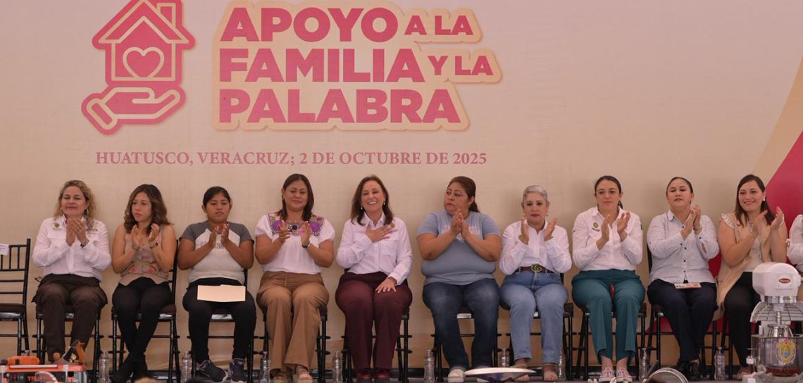 Huatusco, Ver./ En un encuentro con pobladores de 30 municipios, la gobernadora Rocío Nahle García encabezó la entrega conjunta de los programas Apoyo a la Familia y Apoyo a la Palabra-Plan México, estrategias que reafirman el compromiso de la Cuarta Transformación con los veracruzanos al facilitar recursos sin intermediarios para impulsar el bienestar y la productividad.