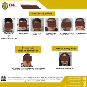 Asimismo, en Tatahuicapan se vinculó a proceso a Gerardo “N” por homicidio doloso, y en Cardel a Juan Alberto “N” por homicidio culposo. En Papantla, Domingo “N” fue vinculado por el delito de abuso sexual de menores de edad agravado.