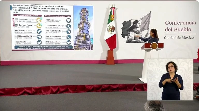 «Para el siguiente (año) y algunos en el 2027, son cinco plantas nuevas con una mayor capacidad y ya estamos licitando las nuevas plantas de generación. Hay recurso, hay capacidad técnica y no va a faltar la energía; ni falta ni va a faltar», dijo Sheinbaum Pardo.