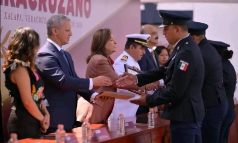 La Mandataria subrayó que el Día del Policía Veracruzano no se limita a un acto protocolario, sino que refleja el esfuerzo cotidiano de quienes sirven a Veracruz, “mi agradecimiento profundo a los policías, es un reconocimiento de un día pero realmente es el trabajo que hacen los 365 días del año”, afirmó durante la entrega de condecoraciones a diversas áreas operativas.