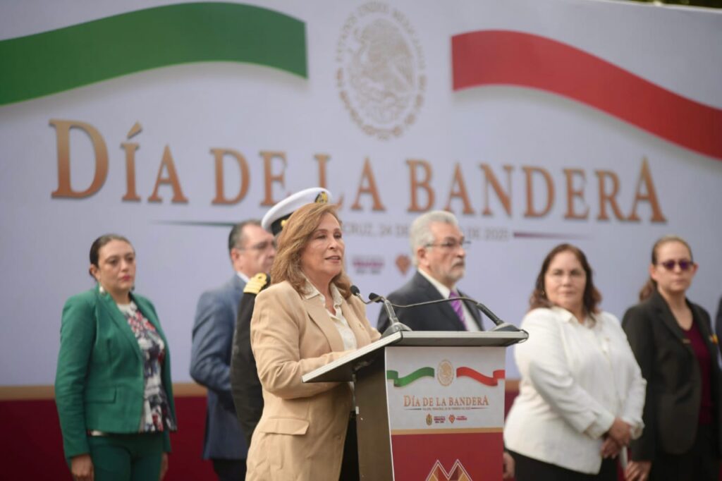 Xalapa, Ver. – Con un acto solemne desde la explanada del Parque Juárez, el Gobierno del Estado de Veracruz conmemoró este 24 de febrero el Día de la Bandera, en una ceremonia encabezada por la gobernadora Rocío Nahle García, acompañada de diversas autoridades estatales y municipales.