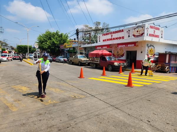 La Delegación de Tránsito núm. 69 de Juan Rodríguez Clara, en coordinación con el H. Ayuntamiento que preside el C. Eric Rodríguez Bárcenas, realizan la rehabilitación de señalamientos en cruces viales con el propósito de mejorar la visibilidad del paso peatonal y brindar seguridad para tener un entorno de tránsito más seguro y ordenado.