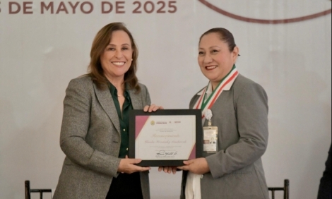 Durante la ceremonia, la titular del Ejecutivo, Rocío Nahle García, entregó seis distinciones por trayectoria y compromiso, así como la Medalla al Mérito y Condecoración Enfermera y Partera Teresa Rodríguez Alonso 2025 a Claudia Hernández Landaverde por su destacada labor en el Hospital del ISSSTE en Poza Rica.