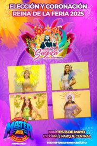 El comité organizador de la feria en honor a San Isidro Labrador 2025, te invita a la elección y coronación de la reina de la feria patronal, el día de hoy martes 13 de mayo a partir de las 07:00 pm. en el parque central, en donde estará amenizando la disco móvil Máster Mix.