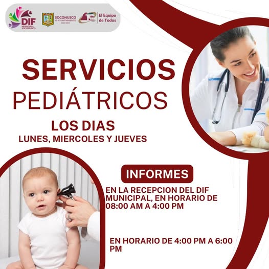 Nos complace informar que a partir de hoy, 03 de abril, el DIF municipal ofrece consultas pediátricas en un horario accesible para todas las familias de la comunidad.