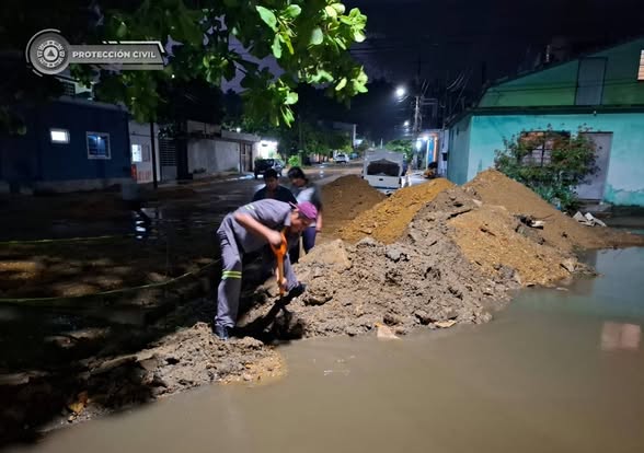 #ProtecciónCivil | Ante el Frente Frío 42, la noche de ayer personal de Protección Civil Municipal apoyó a la ciudadanía haciendo brechas para desaguar encharcamientos; además, se atendió un corto circuito provocado por los fuertes vientos en la colonia Campo Nuevo.