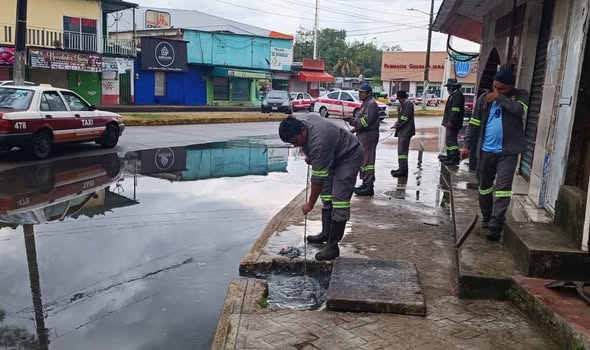 Ante el taponamiento provocado por las recientes lluvias, esta mañana personal del Ayuntamiento llevó a cabo trabajos de limpieza y desazolve en drenajes del boulevard López Portillo.