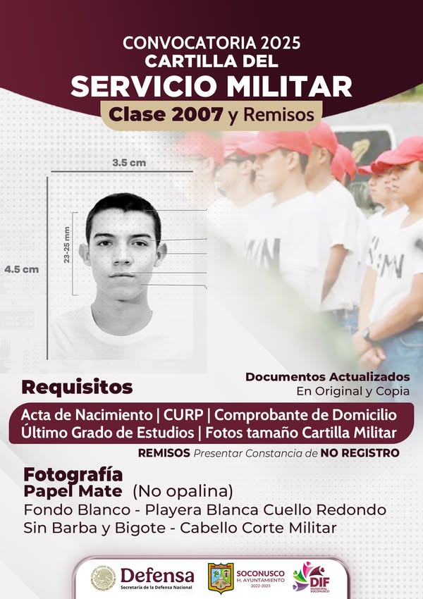 A partir de hoy lunes inicia la recepción de documentos para tramitar la Cartilla del Servicio Militar Clase 2007.