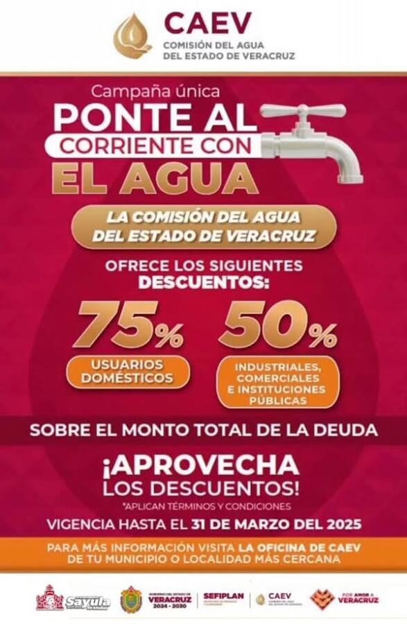 "Aviso a la población" Ponte al día con el agua, aprovecha los grandes descuentos y contribuye a mejorar este servicio.