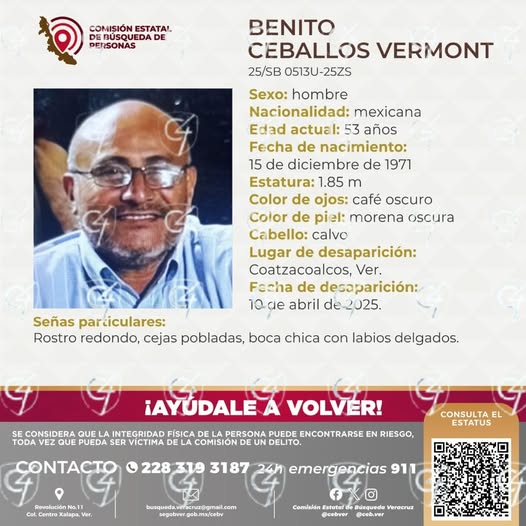 En caso de tener información, favor de comunicarse a los números mencionados en la imagen, o a los números de la Policía Municipal: 9216882738 (Directo) o 9212225752 (WhatsApp).