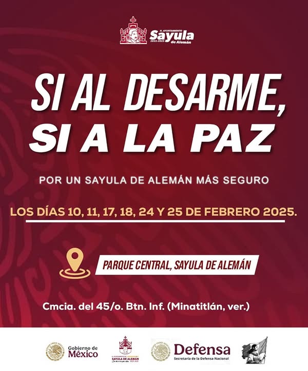 En Sayula de Alemán, la paz y bienestar de la población es nuestra prioridad. Si al desarme, si a la paz. «Sin dar ni un paso atrás».