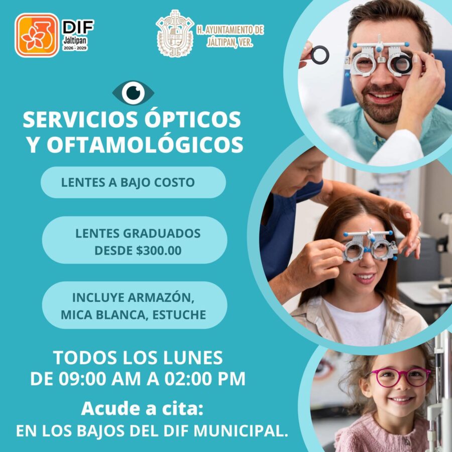 El Sistema DIF de Jáltipan que encabeza la Ing. Verónica Flores Quiñones inicia con la campaña de salud visual en coordinación con D&C Óptica, quienes se encuentran instalados en los bajos del edificio del DIF en un horario de 09:00 AM a 02:00 PM ofreciendo servicios ópticos y oftalmológicos.
