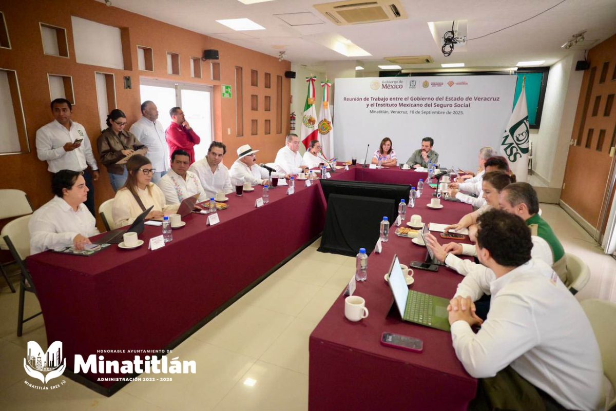 Minatitlán, Ver.– Esta mañana, la Dra. Carmen Medel Palma, Presidenta Municipal de Minatitlán, recibió en el Palacio Municipal a la Gobernadora del Estado, Ing. Rocío Nahle García, y al Mtro. Zoé Robledo Aburto, Director General del Instituto Mexicano del Seguro Social (IMSS), en el marco de una importante reunión de trabajo para el fortalecimiento del sistema de salud en Veracruz.