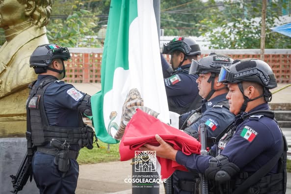 Ediles del H. Ayuntamiento de Cosoleacaque encabezaron la ceremonia de izamiento de bandera para conmemorar el 108 aniversario de la Promulgación de la Constitución Política de los Estados Unidos Mexicanos de 1917.