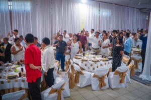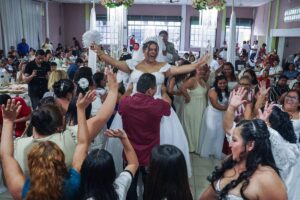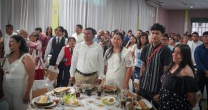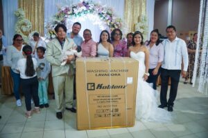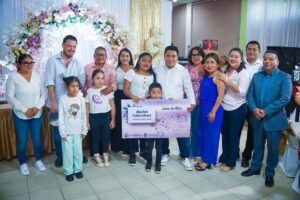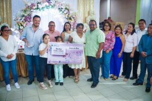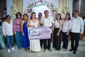 Las parejas de Cosoleacaque disfrutaron de un gran banquete, música, baile y la rifa de viajes de luna de miel, salas, colchones, microondas, refrigeradores, cafeteras, vajillas y demás obsequios entregados mediante rifas.