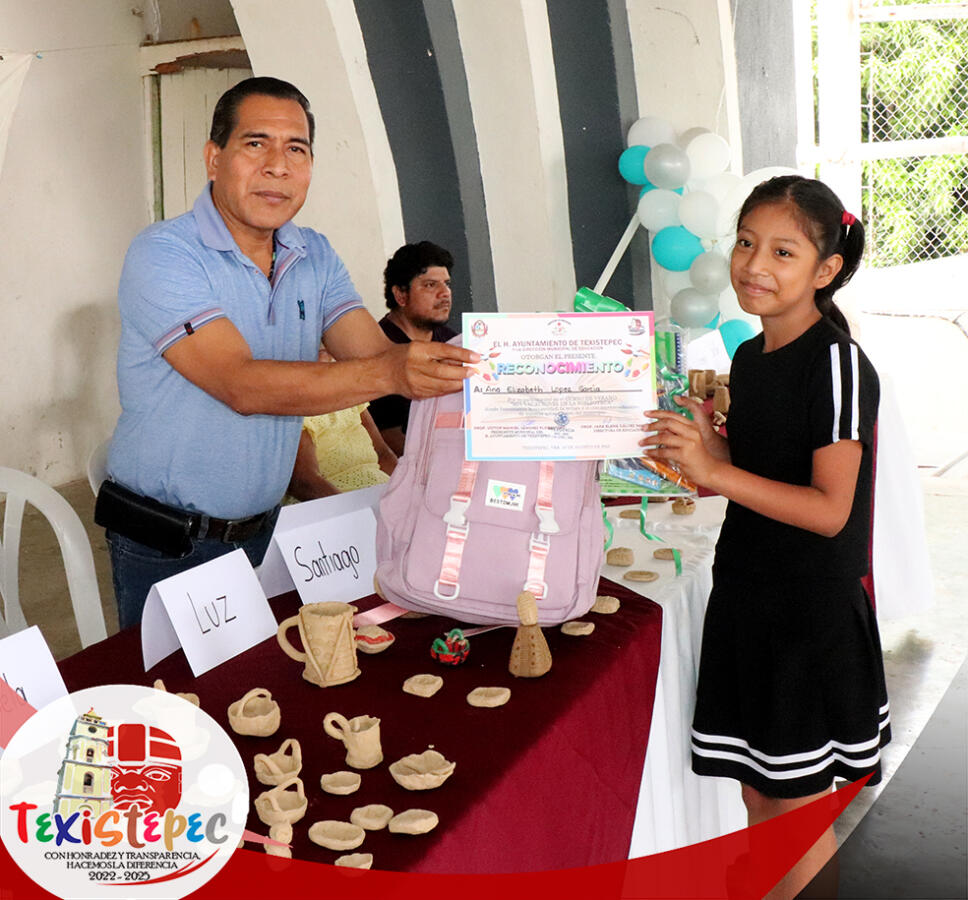 Por otro lado el Prof. Sánchez Florentino externó una gran felicitación al maestro artesano Villaner Rosas Hernández quien es un reconocido promotor de la cultura Olmeca, destacando que lo que se busca es que las niñas y niños se interesen por conocer la gran herencia cultural de Texistepec.