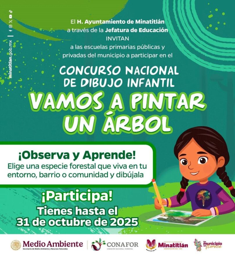 Concurso Nacional de Dibujo Infantil “Vamos a pintar un árbol” ¡Deja volar tu imaginación y participa! Tienes hasta el 31 de octubre para entregar tu dibujo. Para más información, visita las oficinas de la Biblioteca Municipal Viriato Da Silveira. Observa y Aprende.