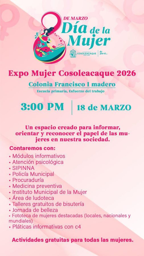 Cosoleacaque Este miércoles 18 de marzo continuamos con las actividades conmemorativas por el 8 de marzo, Día Internacional de la Mujer.