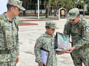 Durante esta emotiva jornada, Emiliano, “el soldado Chávez” tuvo la oportunidad de convivir con elementos de la 29/a Zona Militar, conocer de cerca las actividades que realiza el Ejército Mexicano y sentirse parte de una gran familia que honra valores como la disciplina, el honor y el servicio a la patria.