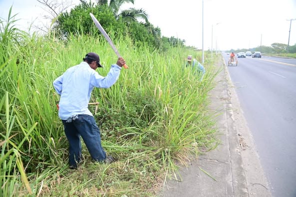 Departamento de Ecología lleva a cabo trabajos de limpieza en los laterales de la carrera Nanchital – Coatzacoalcos (Cuatro Carriles).