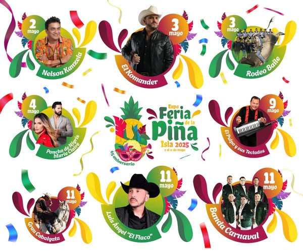 Disfrutemos juntos de nuestra máxima fiesta #ExpoFeriaDeLaPiña Isla 2025 Del 2 al 11 del mayo #Cartelera2025