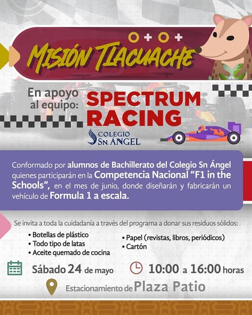 El Ayuntamiento de Coatzacoalcos invita a sumarte al apoyo del equipo ‘Spectrum Racing’ del Colegio San Ángel en su competencia nacional.