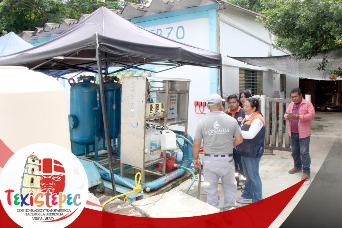 Con la presencia de la encargada de emergencias sanitarias de la oficina de la protección contra riesgos sanitarios adscrita a la jurisdicción sanitaria número X, la química Bertha Bustamante Cagal, y el director de protección civil del municipio de Texistepec ingeniero Gamaliel de Jesús Antonio, siguiendo las instrucciones del presidente municipal profesor Víctor Manuel Sánchez Florentino, que el agua sé que se esta entregando a las comunidades, sea agua potable.