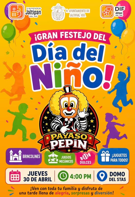 El DIF Municipal, en coordinación con el H. Ayuntamiento, invita a todas las familias a ser parte de este gran festejo del Día del Niño, donde la diversión, las sonrisas y los momentos inolvidables serán los protagonistas.