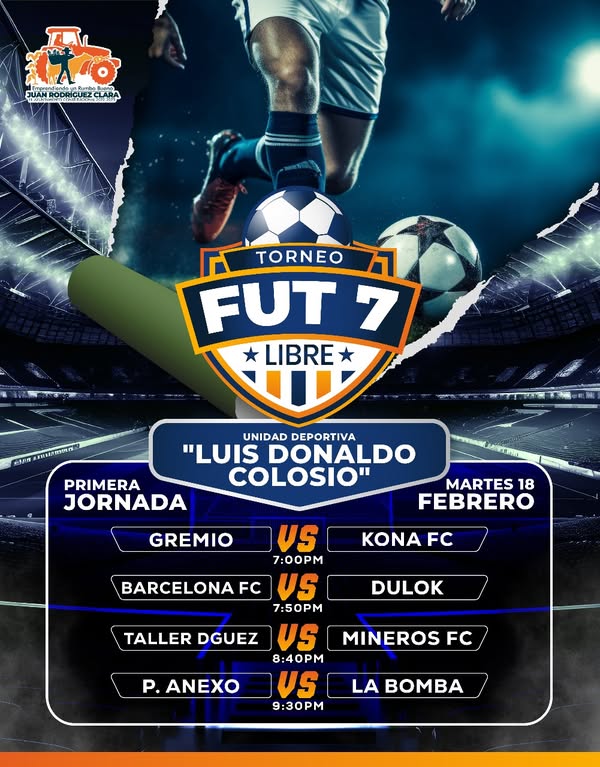 El H. Ayuntamiento y la COMUDE invitan al gran inicio de torneo de Fut 7 Categoría libre, en la Unidad Deportiva “Luis Donaldo Colosio”