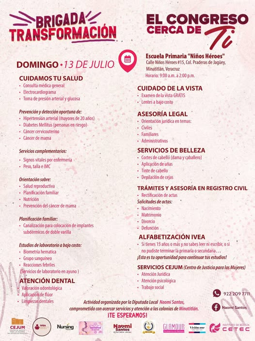 Nos vemos con la Brigada Transformación para acercarte servicios médicos, legales y de bienestar totalmente GRATUITOS o a bajo costo