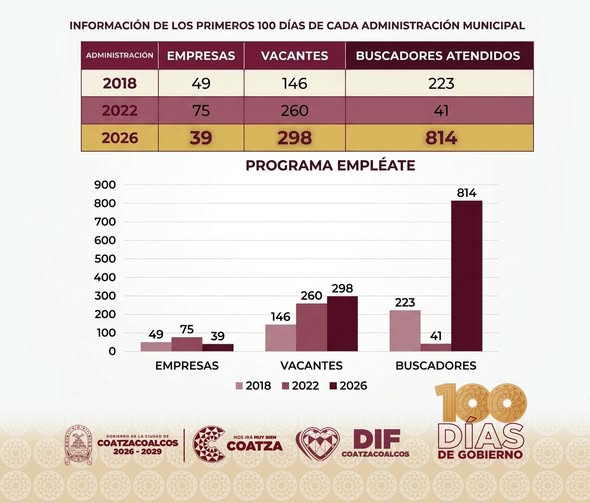 En estos primeros 100 días de administración, se presentan los resultados alcanzados a través del Programa Empléate, los cuales reflejan la transformación de la vinculación laboral en el municipio.