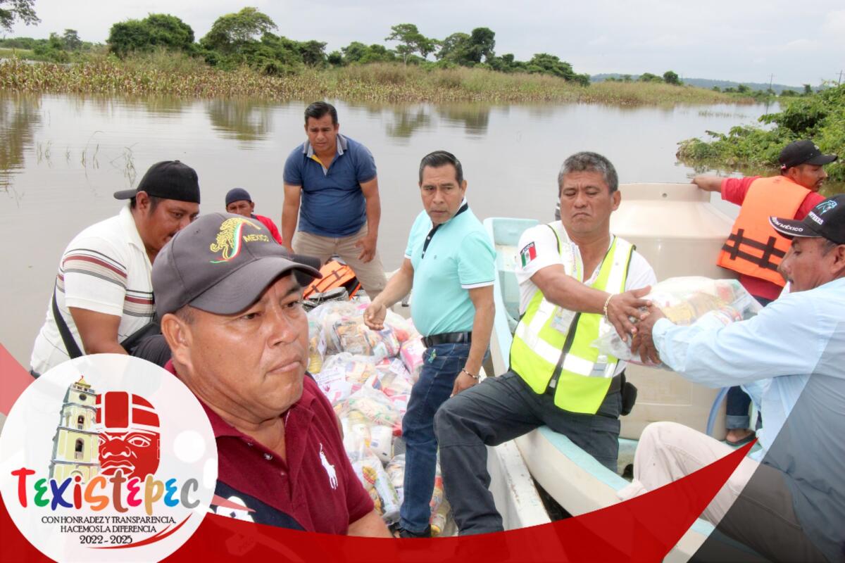 Donde se le entregó el apoyo adquirido con recursos municipales, a cada familia de estas localidades, con la finalidad de apoyar un poco a su economía durante estos días que la creciente del río les impide salir de sus hogares.
