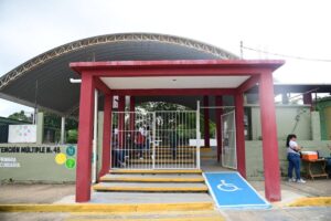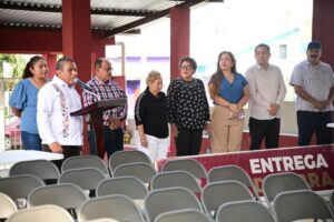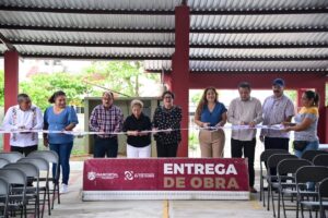 Nanchital, Ver. – Esta mañana, autoridades municipales en cabezadas por la Alcaldesa Esmeralda Mora Zamudio llevaron a cabo la entrega de la Obra de Construcción de Techado y Entrada de Recepción, así como la donación de mobiliario en el Centro de Atención Múltiple número 48.