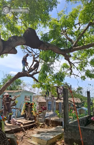 #ProtecciónCivil | Este día, personal de Protección Civil Municipal llevó a cabo el retiro de un árbol, que se desplomó por el paso del Frente Frío número 42 en el Panteón Tepeyac.