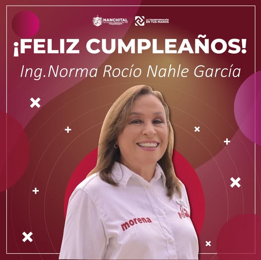 El Ayuntamiento de Nanchital, que encabeza Esmeralda Mora Zamudio, felicita a la Ing. Rocío Nahle García, Gobernadora del estado de Veracruz, por su cumpleaños.