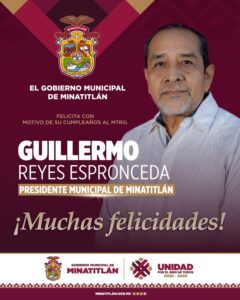 El Gobierno Municipal extiende una cordial felicitación al Maestro Guillermo Reyes Espronceda, presidente Municipal de Minatitlán, con motivo de su cumpleaños este 10 de febrero.