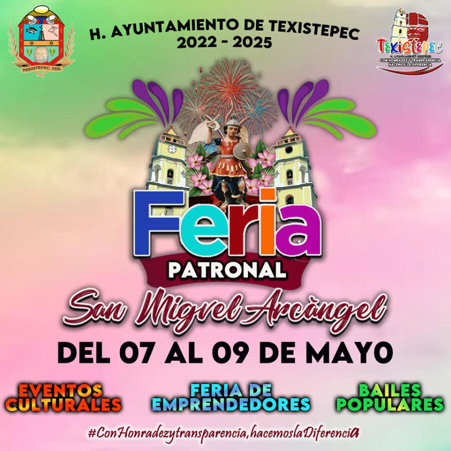El H Ayuntamiento de Texistepec y el P. Víctor Manuel Sánchez Florentino invitan a la población de Texistepec y municipios vecinos a disfrutar de la FERIA EN HONOR AL SANTO PATRONO SAN MIGUEL ARCÁNGEL