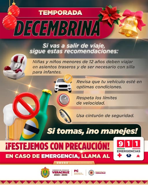 Festejemos con precaución Si sales de viaje, toma en cuenta estas recomendaciones. Si tomas, no manejes. Tu seguridad y la de tu familia es lo más importante. Número de Emergencias 911