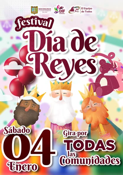El Dif Municipal y el H. Ayuntamiento de Soconusco invitan a las niñas y niños de nuestro municipio al festival del Día de Reyes,