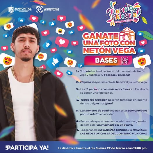 🎇🎉El Ayuntamiento de Nanchital te invita a participar en esta dinámica, para conocer y tomarte una foto con Netón Vega ✨👌