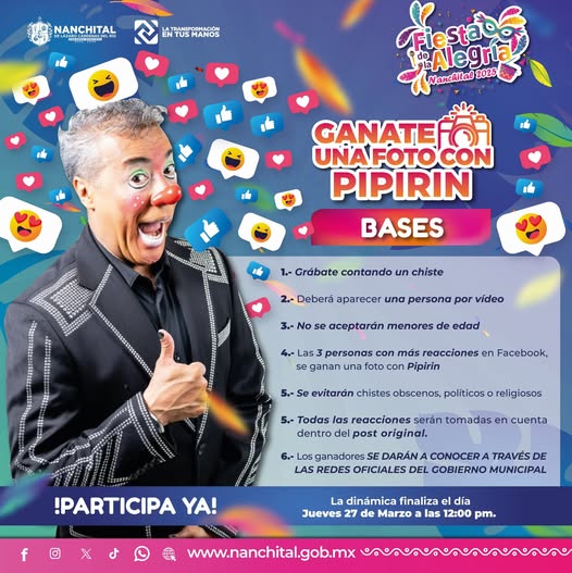 El Ayuntamiento de Nanchital te invita a participar en esta dinámica, para tomarte una foto con Pipirin.