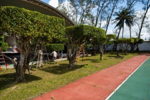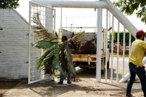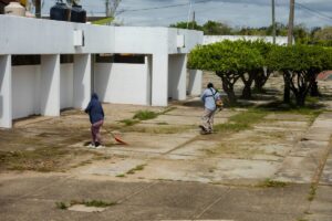 A través del Departamento de Servicios Generales en coordinación con el Departamento de Parques y Jardines, desplegó una cuadrilla para llevar a cabo labores de limpieza y mantenimiento en la Unidad Deportiva Benito Juárez, ubicada en la colonia Petrolera.