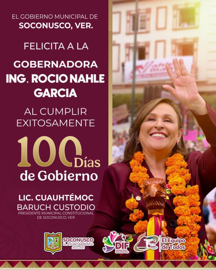 GOBIERNO MUNICIPAL DE SOCONUSCO FELICITA A LA ING. ROCÍO NAHLE GARCÍA EN SUS PRIMEROS 100 DÍAS DE GOBIERNO