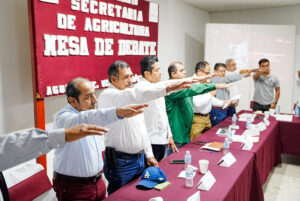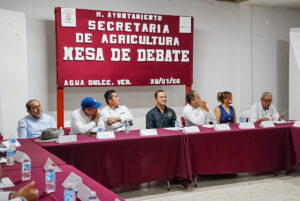 En esta mesa de trabajo, estuvo encabezada por Angel Delgado Ramírez, Alcalde de Agua Dulce, del cuerpo edilicio y administrativo de Minatitlán asistió el Regidor Sexto, José Alfredo Ramos Gabriel, encargado de la comisión de Fomento Agropecuario y Miguel Ángel Brambilla Mecott, Director de Fomento Agropecuario.