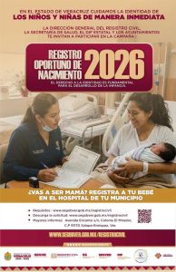 El H. Ayuntamiento de Cosoleacaque, en coordinación con el Gobierno del Estado de Veracruz, la Dirección General del Registro Civil y la Oficialía del Registro Civil de Cosoleacaque, informa a la ciudadanía sobre la Campaña de Registro Oportuno de Nacimiento 2026, la cual se llevará a cabo del 28 de marzo al 28 de abril.