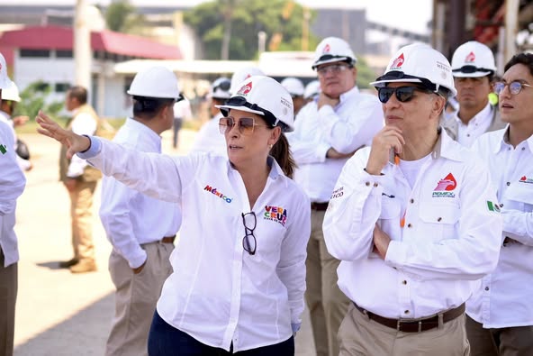 En compañía del director de Pemex, Víctor Rodríguez Padilla, estamos recorriendo y supervisando distintas instalaciones estratégicas del Gobierno de México en Veracruz. Iniciamos en los complejos petroquímicos de La Cangrejera y Agronitrogenados.