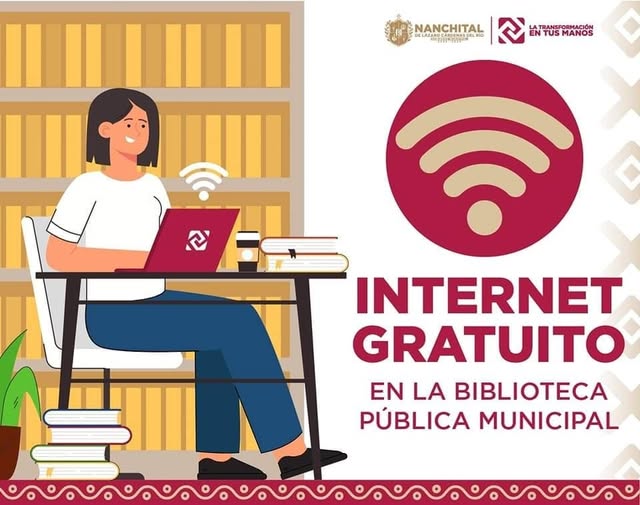 Puede ser una imagen de texto que dice "NANCHITAL FDEL .) ENTUSMANOS TUS MANOS EN ENTUS อ C INTERNET GRATUITO EN LA BIBLIOTECA PÚBLICA MUNICIPAL"