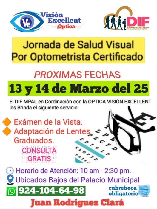 Jornada de Salud Visual Próximas Fechas Juan Rodríguez Clara, Ver.