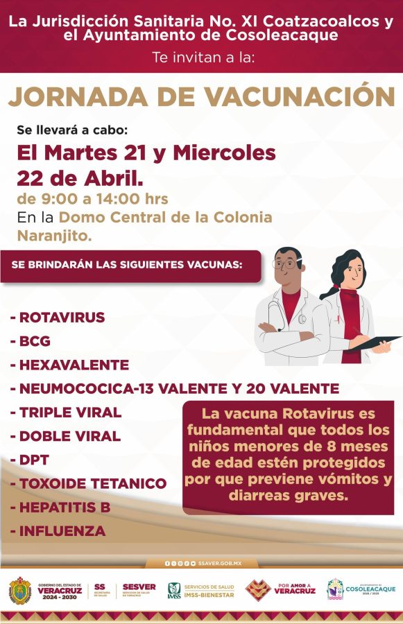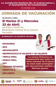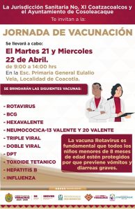 El H. Ayuntamiento de Cosoleacaque, en coordinación con la Jurisdicción Sanitaria No. XI, te invita a proteger la salud de tu familia.